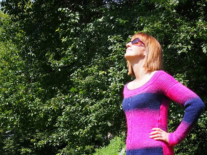 Dziś pokażę jak sweterek ombre granatu z neonowym różem prezentuje się na modelce.